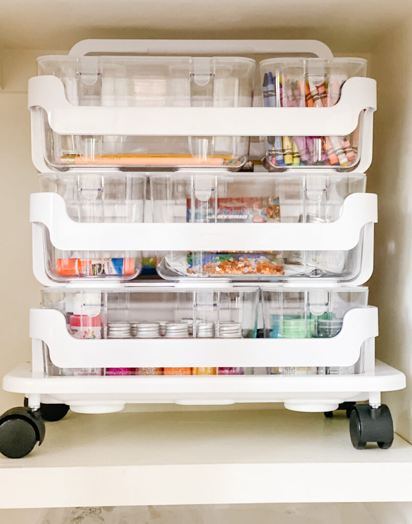 Let’s be honest, kids’ spaces are often tough to get a handle on. As professional organizers and parents, we understand the struggle. You want them to have “stuff”, but you don’t want the stuff to take over your entire home. When organizing for our recent client, she expressed wanting a space that housed their toys and crafts that was also mobile so the kids could take them around to the different areas of the house. The organizing products we used to wrangle this space were a perfect fit and can be adjusted over time as needed. Everything we used is linked below! *affiliate links used*
