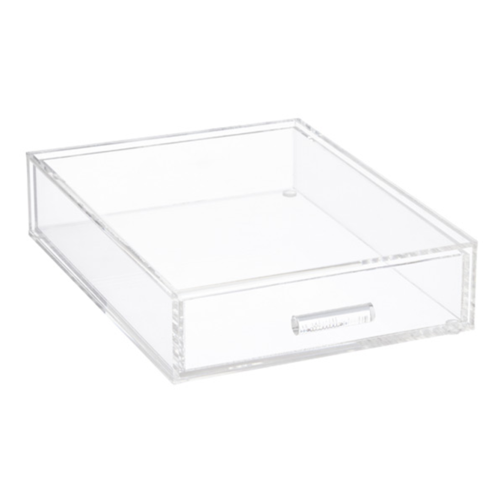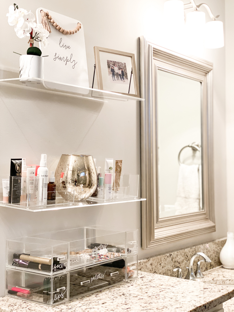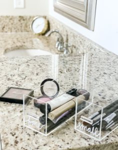 I had to get creative and as soon as I saw the luxe acrylic modular system, I knew just what I wanted to do. I don’t have a ton of jewelry, and a standard amount of makeup, making this setup the perfect fit. I love that you can clearly see inside the containers because of the crystal acrylic that is used, making labeling optional. (I almost always choose to label though ;-))