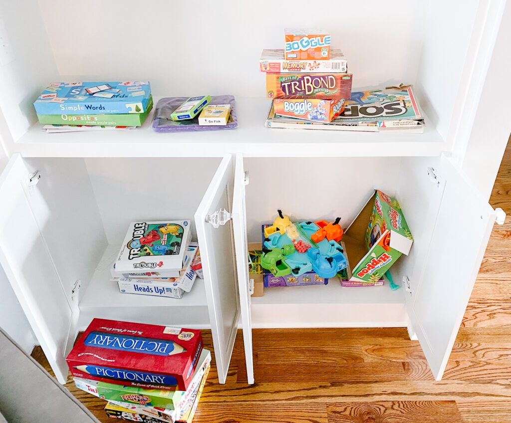 Board game boxes can be bulky, tear down over time, and can be a pain to keep up with. Recently while working at the home for one of our in-home organizing clients, we implemented this easy solution for organizing family games.