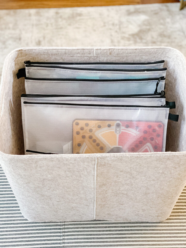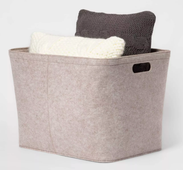 We matched the basket we used to organize the board games to our client’s home design aesthetic. Here are a few other options that could work as well.
