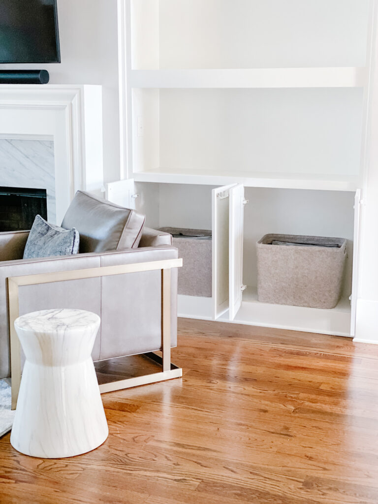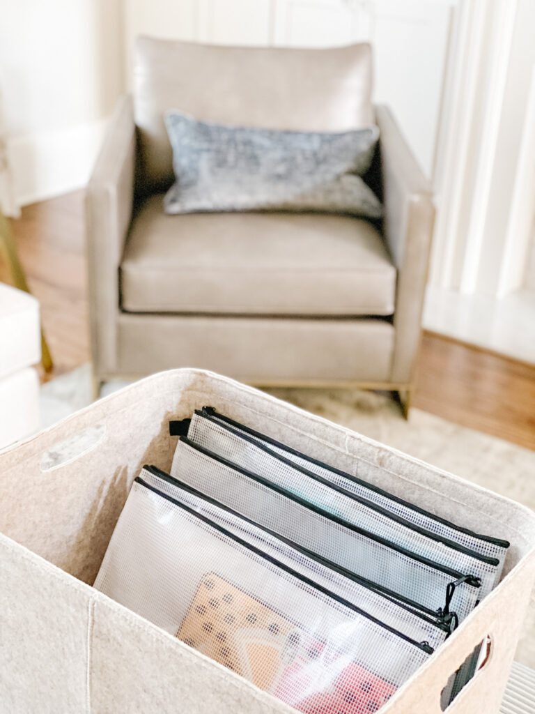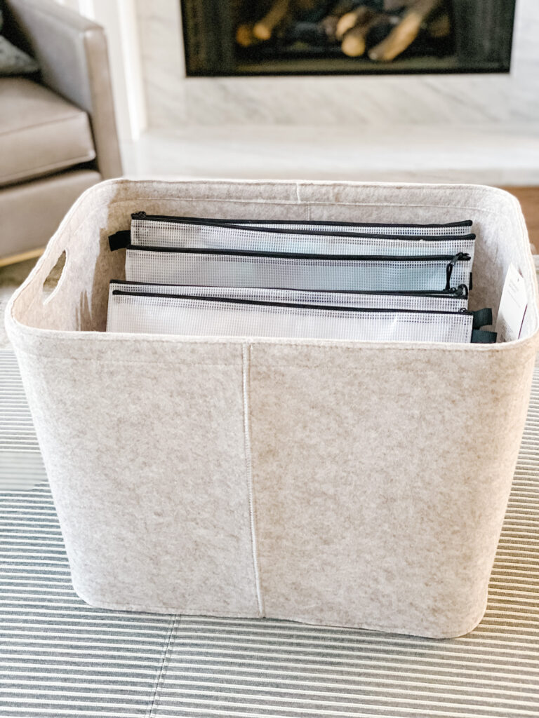 We matched the basket we used to organize the board games to our client’s home design aesthetic. Here are a few other options that could work as well.