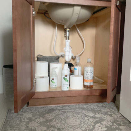 Under the sink is an often overlooked area when it comes to organizing. And I totally get why. It’s just so darn easy to just throw things under there and shut the cabinet.